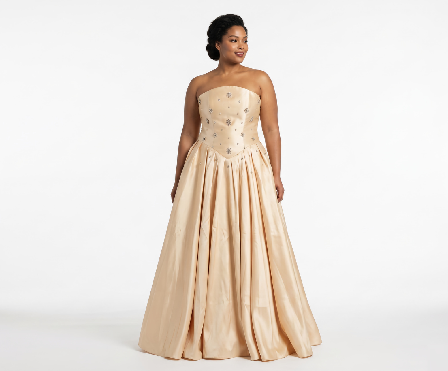 Esse vestido é ajustado especialmente para o seu corpo, com ajustes já inclusos no aluguel. Quando o modelo permite, também podemos adaptar detalhes como mangas, alças, bordados, fendas ou decotes.