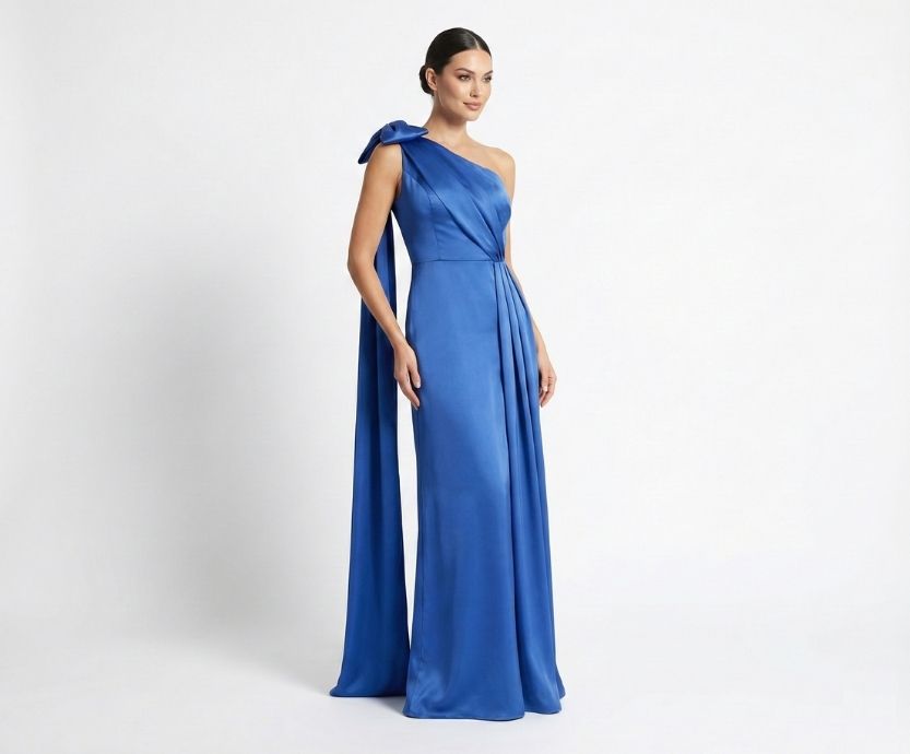 Vestido Azul Royal Assimétrico com Laço e Capa
