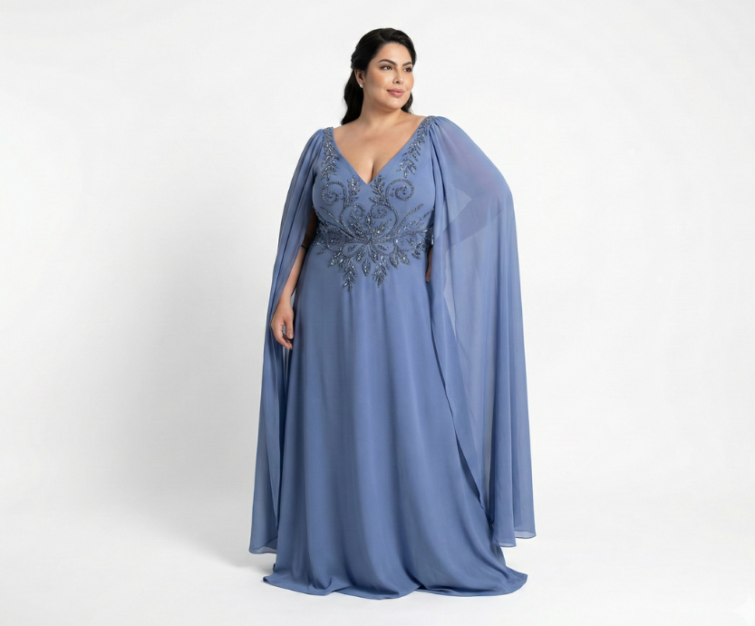 Vestido Azul Serenity em Crepe Paris Bordado em Vidrilho de Cristal