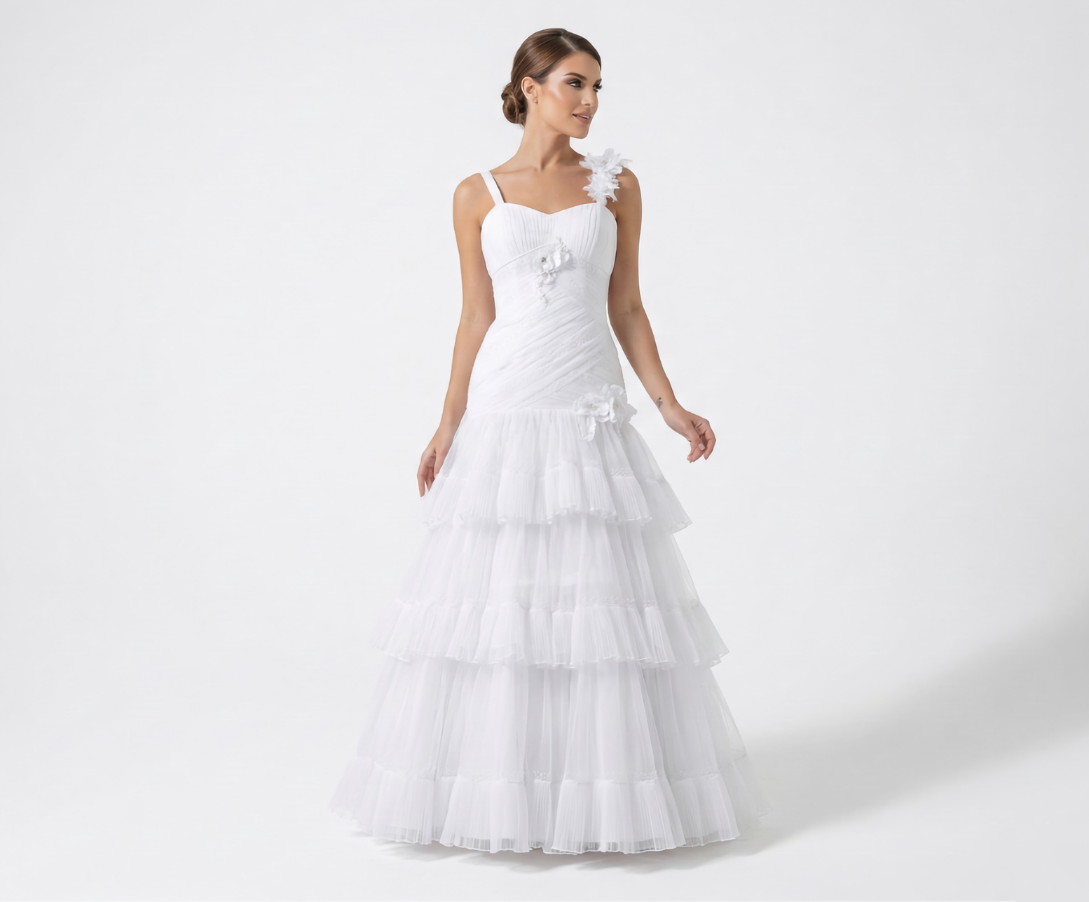 Esse vestido é ajustado especialmente para o seu corpo, com ajustes já inclusos no aluguel. Quando o modelo permite, também podemos adaptar detalhes como mangas, alças, bordados, fendas ou decotes.