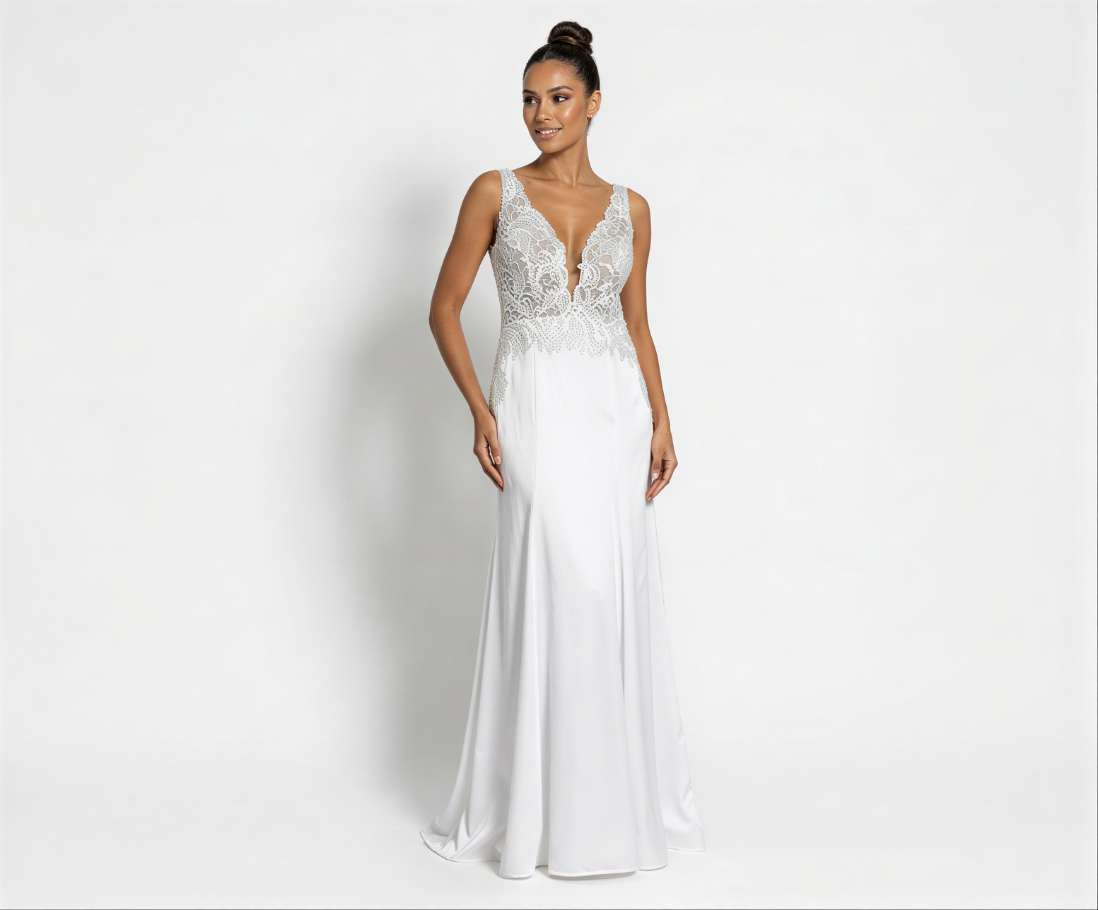 Esse vestido é ajustado especialmente para o seu corpo, com ajustes já inclusos no aluguel. Quando o modelo permite, também podemos adaptar detalhes como mangas, alças, bordados, fendas ou decotes.