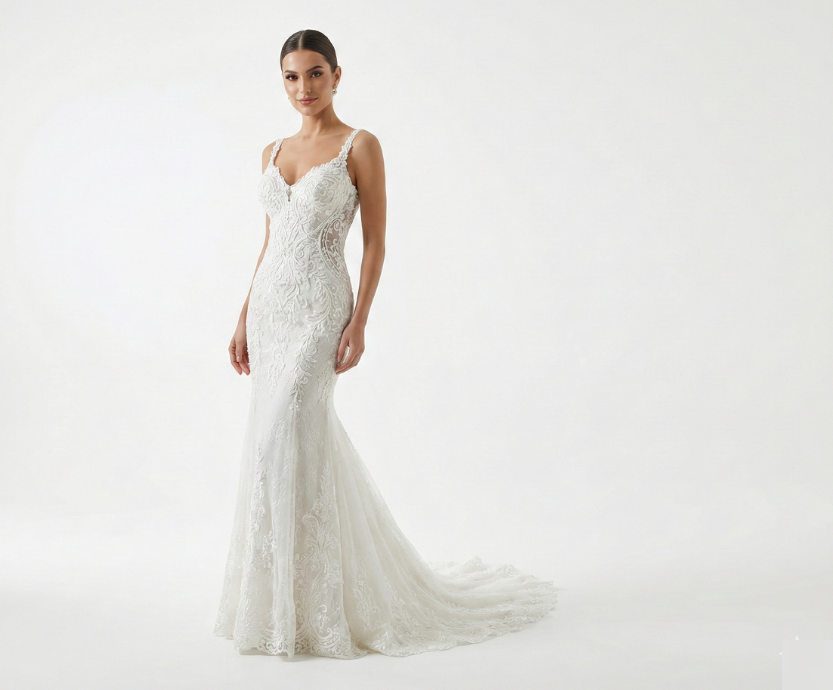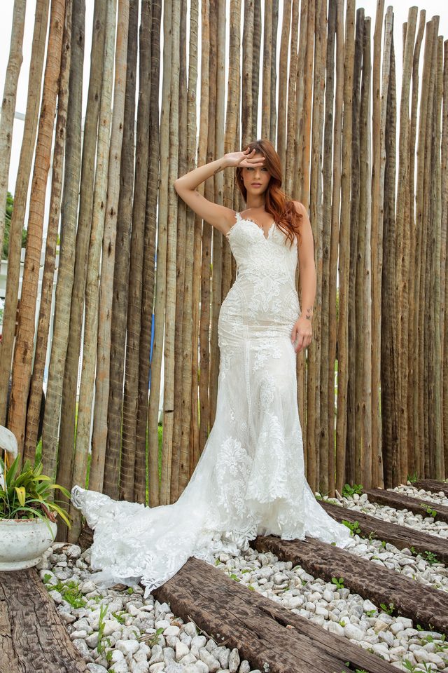 Esse vestido é ajustado especialmente para o seu corpo, com ajustes já inclusos no aluguel. Quando o modelo permite, também podemos adaptar detalhes como mangas, alças, bordados, fendas ou decotes.
