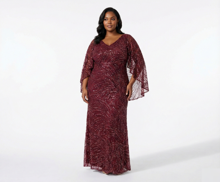 Vestido Longo Marsala com Pedrarias e Manga Capa
