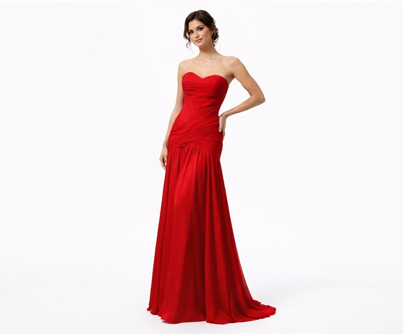 Vestido Vermelho Tomara Que Caia com Corpo Drapeado e Saia Fluida
